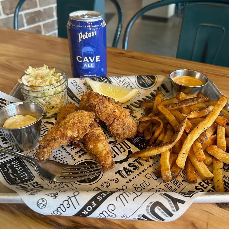 Dinners are served with citrus slaw, tartar sauce, lemon, and frites. Sandwiches are served with choice of side: Daily Side, Mixed Greens (GF, VG), Coleslaw (GF, V), Soup +$3, Frites (GF, VG) +$3